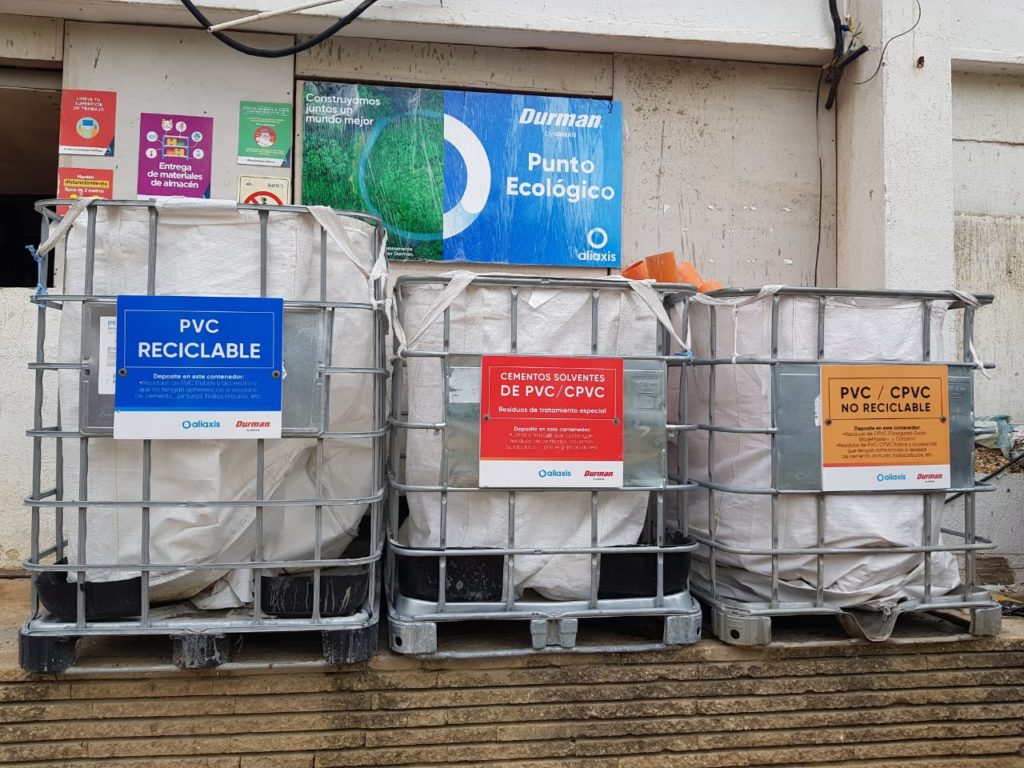 Para ello, con sus socios de negocio y en aquellas obras que utilizan el 100% de materiales Durman®, la empresa se compromete a donar puntos ecológicos adecuados (centros de acopio), y capacitar mediante talleres en: sostenibilidad, buenas prácticas de instalación de los sistemas, reducción de desperdicio, clasificación de materiales en el punto, aplicación correcta de cementos solventes y manipulación y transporte adecuado de materiales.
